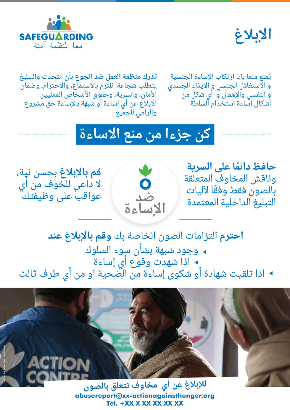 Création de l'identité SAFEGUARDING contre les abus : logotype, charte graphique, affiches de sensibilisation pour l'ONG internationale humanitaire Action contre la Faim